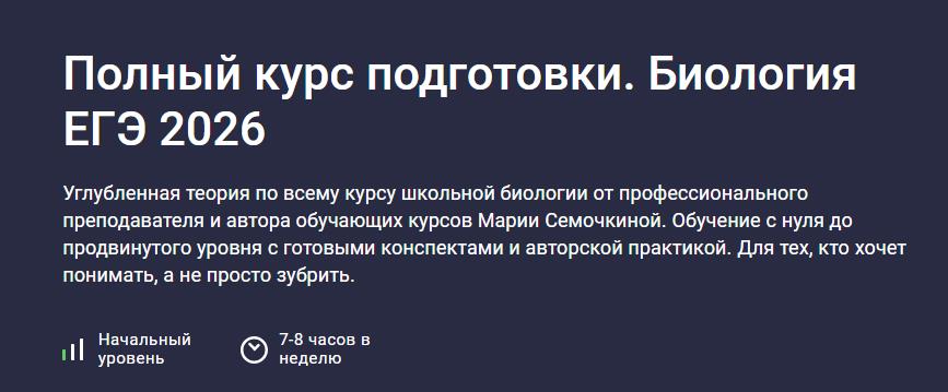 Курс предназначен для наработки теоретических знаний и формирования глубокого понимания биологии, необходимого для ответов и на первую и на вторую часть экзамена.