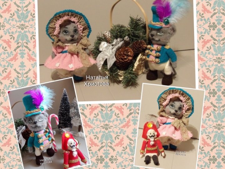 Новый год совсем уже скоро. А это значит, что сказка должна прийти в каждым дом. Приглашаем всех связать вместе с Натальей Христовой Рождественскую сказку. Двух маленьких мышат Мари и Франца, а также их друга Щелкунчика. Винтажные мышки будут радовать ваших детишек и создадут волшебное настроение , праздничную атмосферу в вашем доме. Мышки маленькие (всего 15см росточком), тискательные, детки с удовольствием будут играть ими под новогодней елью. Головушки у мышат на шарнире, ручки, ножки - подвижные.