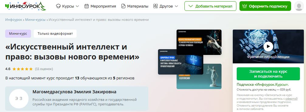 [Инфоурок] Искусственный интеллект и право: вызовы нового времени [Эмилия Магомедрасулова]