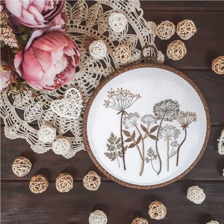 Мы не только с самого начала, шаг за шагом вышьем этот изысканный рисунок, но и поговорим о том, как создать объём в плоской картинке, как сделать «тяжелые» элементы невесомыми, как подобрать цвета, ну и конечно разберём множество швов и техник вышивания.