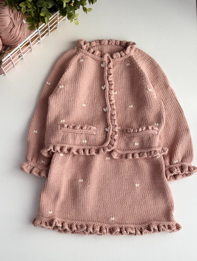 В комплект входит описание вязания жакета и юбочки, также есть возможность приобрести описания по отдельности,